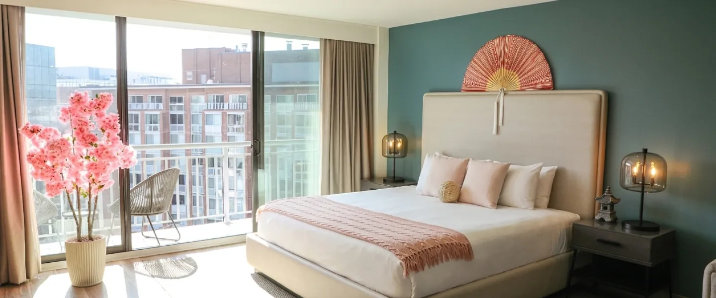 Step into a fully cherry blossom-inspired suite, complete with a private balcony perfect for taking in the city air. Sip champagne among blush-toned décor, indulge in sweet treats, and unwind in a serene, petal-filled atmosphere that captures the beauty and fleeting magic of peak bloom.