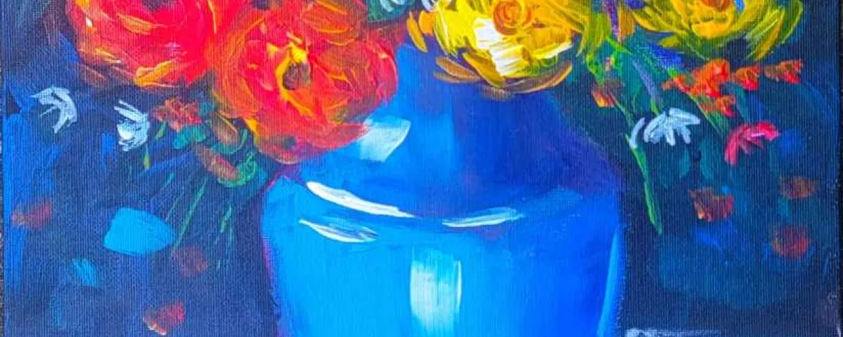 Step into a world of blossoming beauty as we paint a captivating floral vase! A true masterpiece!