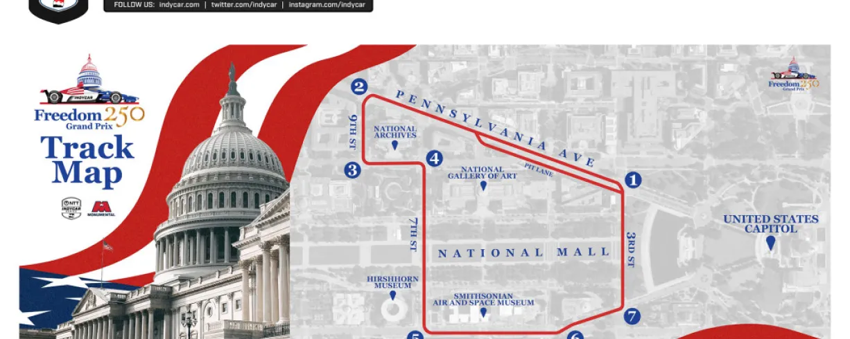 The Freedom 250 Grand Prix of Washington, D.C., will take place Aug. 22-23, 2026, marking the first‑ever NTT INDYCAR SERIES race on the National Mall. The free, two-day motorsports event will celebrate Americas 250th anniversary with world‑class racing set against the backdrop of some of Americas most historic landmarks, including the Washington Monument and the U.S. Capitol.