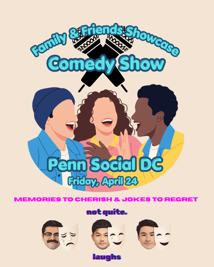 Not Quite Laughs presents its debut show: The Friends & Family Comedy Showcase. Were bringing together a lineup of rising DMV comedians whove already proven they can deliver. These arent just comics to us, theyre our people. And now, were putting them on stage to share that energy with you.