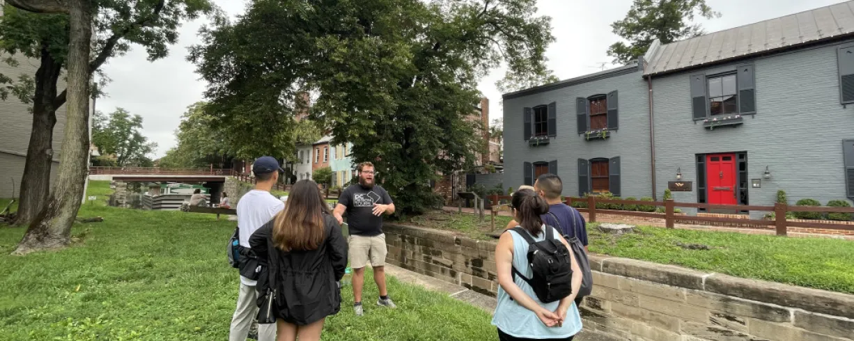 Meet your guide at the intersection of Thomas Jefferson Street NW and the C&O Canal. This 2.5 hour walking tour covers about 2.5 miles and ends at Georgetown Waterfront Park near 33rd St and Water Street. Private versions are also available—on foot, by car, or by coach. Visit www.dcdesigntours.com to learn more and reserve your spot.