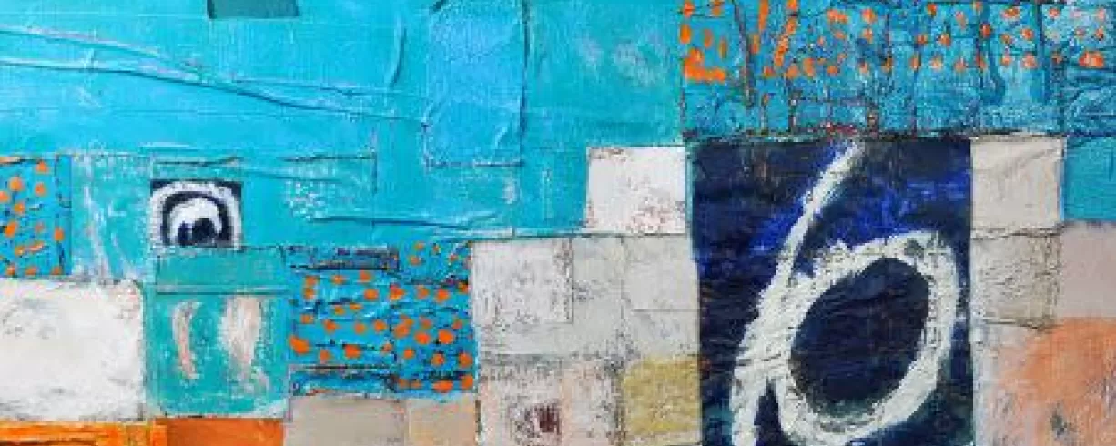 An exhibiting artist for over 25 years, Bruce has steadily oriented her craft toward capturing and encouraging the process of artmaking as an end in its own right. An intuitive combination of painting, collage and textile art, Bruce’s work represents the culmination of a holistic creative practice developed by the artist over several decades, often addressing themes of life, renewal and healing. “So many of the materials I use in my work have magically found their way to me. Years ago I think I was more concerned with what it meant to use found materials or created or store-bought materials, but now I’ve just completely surrendered to the idea of letting objects, fabrics, materials find me,” said Bruce. Referred to by the artist simply as paintings, her mixed-media compositions are in fact patchworks of painted fabric, individually selected from Bruce’s vast archive and pasted directly onto the canvas in a textile collage that can sometimes resemble a quilt. The result of a slow and perpetual artistic method, each work represents hours of treatment, selection and juxtaposition until the whole becomes manifestly greater than its parts. Bruce’s process ends with her titling of each work: a poetic articulation of what the work is at this point capable of expressing for itself.