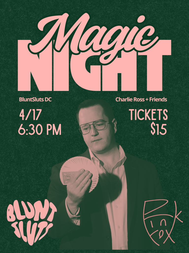 Master magician Charlie Ross performs incredible sleight of hand and mind bending mentalism. Witness unexplained phenomena at BluntSluts DC.
