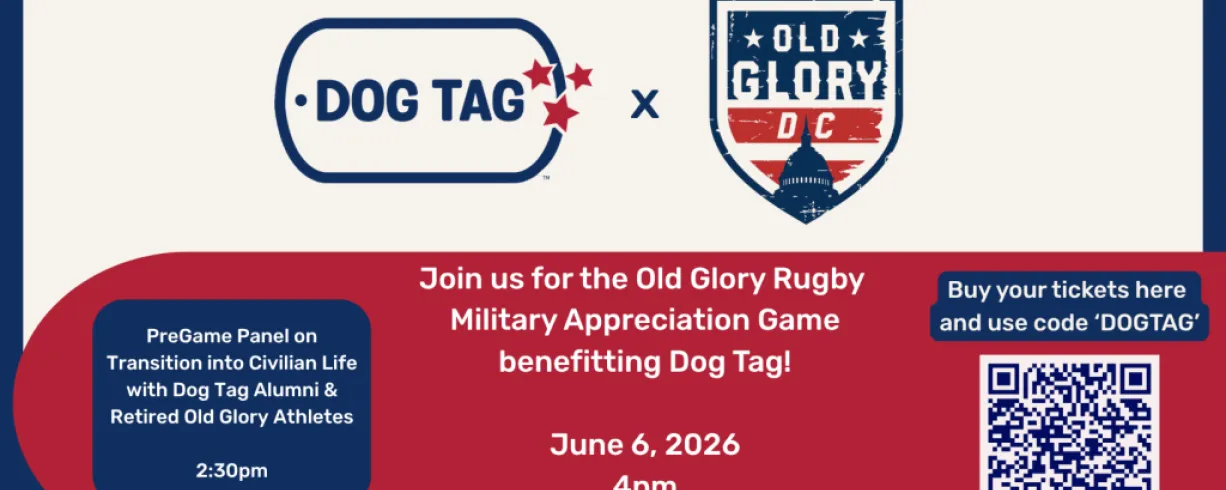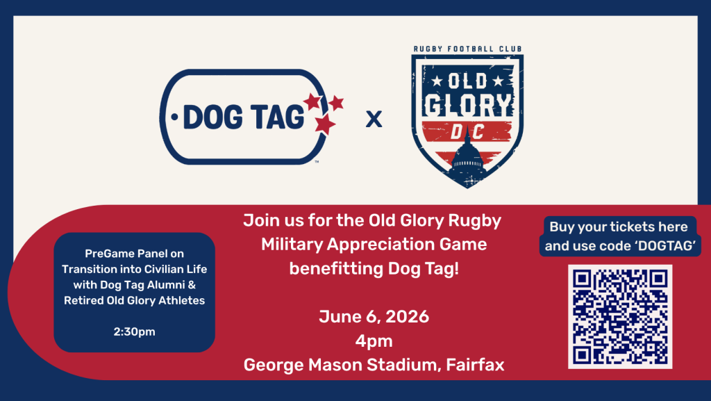 You're invited to join Dog Tag for the Old Glory Rugby Military Appreciation game at George Mason Stadium. $10 from every ticket sale is a donation to Dog Tag!