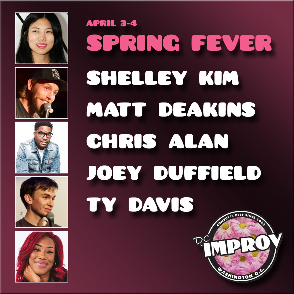 Spring has sprung, the grass is riz, we know where the good times is! Celebrate the change of season at DC's top comedy spot, laughing along with five outstanding stand-up comedians. The Spring Fever Showcase features a great mix of styles that is sure to bring smiles into bloom. The showcase performance will last around 90 minutes.