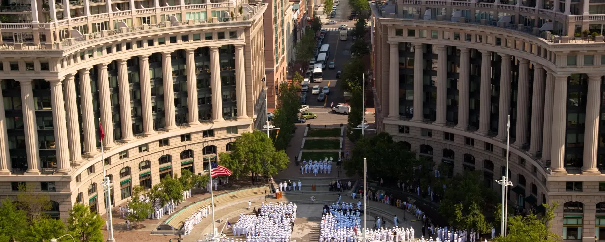 The United States Navy Memorial is located on Pennsylvania Avenue midway between the White House and the Capitol Building. It is a popular destination for Sea Service members and their families, tour groups, and businesses that host private events.