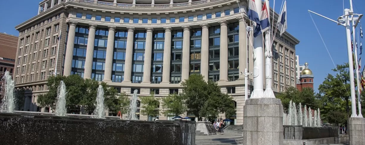 Overlooking the plaza is the original Lone Sailor statue, which has become an iconic, nationally renowned representation of American sailors. The plaza is decorated with signal flags, fountain pools, and bronze sculptures depicting Navy history.