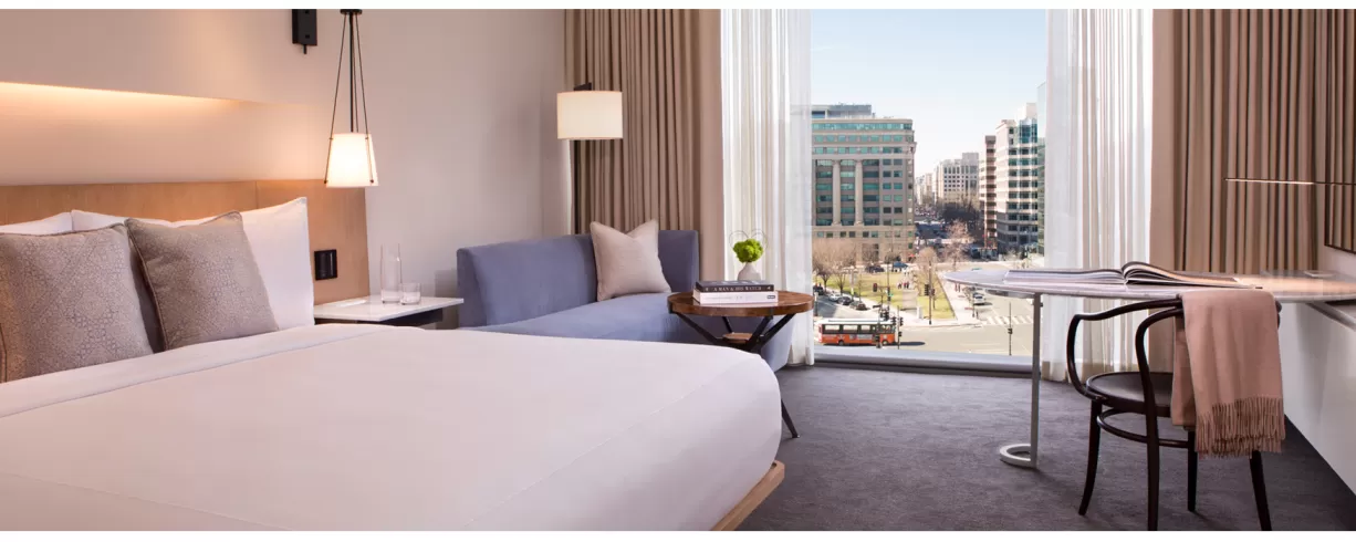 This luxury hotel offers an elevated perch from which to experience the nation's capital, with inspiring views of Downtown across a range of event spaces, every guest room and our cosmopolitan rooftop bar. Moments from the best of the city - the hotel is adjacent to premier shops and dining at CityCenterDC and mere steps from the Walter E. Washington Convention Center and Metro lines.