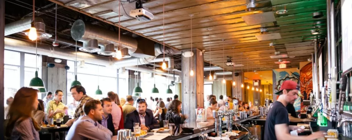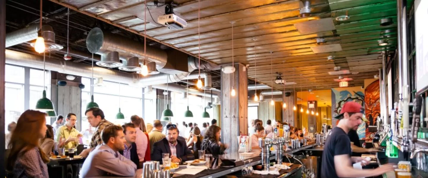Highline RxR is a sprawling beer hall located prominently on the main drag in Crystal City. The full-service bar boasts 40 drafts that are available in liter mugs. Long beer hall tables make for a good time whether you're with a large group or meeting the people next to you, and table games are a great way to pass the time when your sports team isn't on one of the massive TV screens. For those who are hungry, Highline RxR serves everything from giant pretzels to burgers and sandwiches.