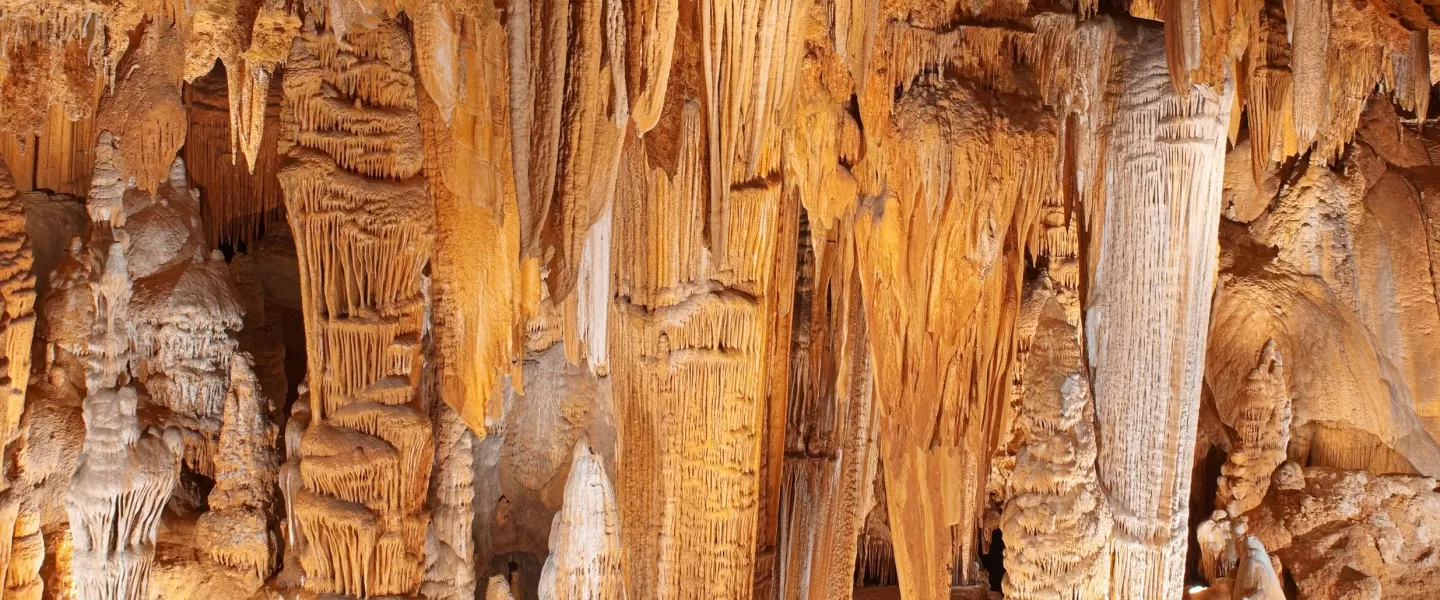 The largest caverns in Eastern America and the most visited in the United States. This U.S. Natural Landmark is located 90 minutes southwest of Washington, DC, just 10 minutes from Skyline Drive and Shenandoah National Park. Discover cathedral-sized rooms with ceilings 10 stories high, filled with towering stone columns and crystal-clear pools. The Smithsonian Institution report of July 13 and 14, 1880 comments "....it is safe to say that there is probably no other cave in the world more completely and profusely decorated with stalactite and stalagmite ornamentation than that of Luray."