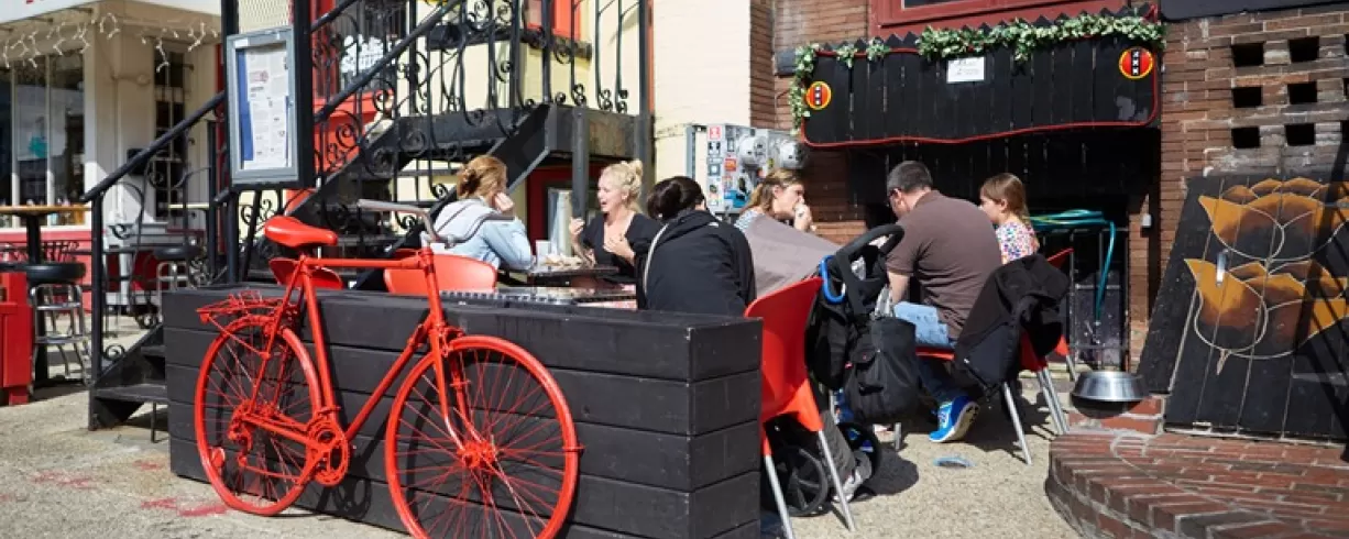 Small hotel with efficient rooms in heart of a lively neighborhood