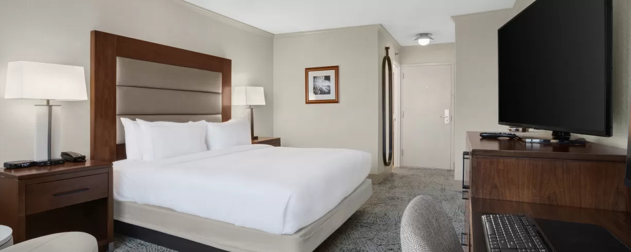 The newly renovated hotel offers 393 guest rooms including 7 suites, king-bedded rooms; double/double rooms featuring queen beds; and ADA-compliant rooms.
