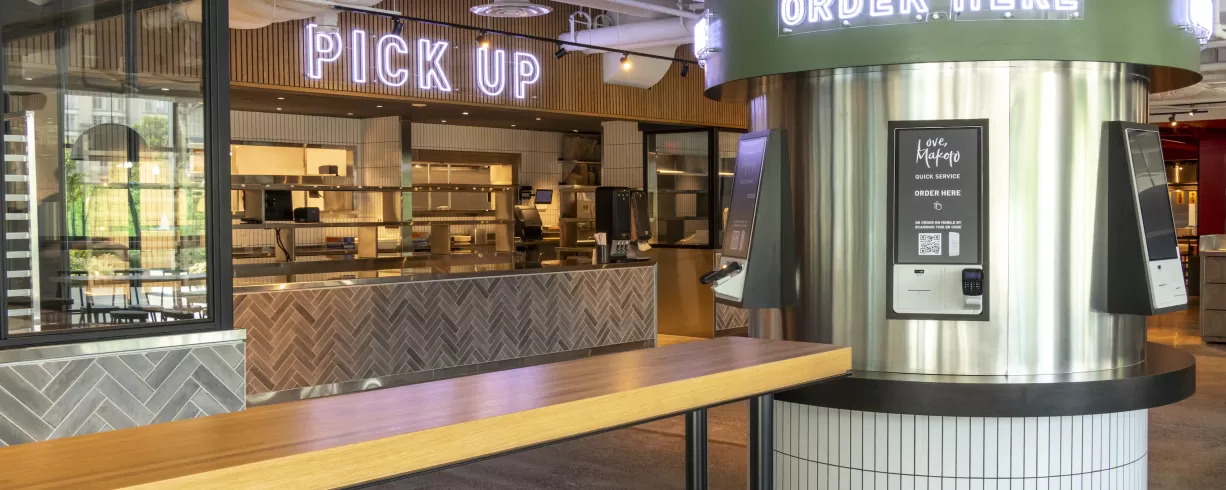 Love on the Run, the fast-casual section of Love, Makoto, is the largest of all four spaces and features two private entrances, bright windows and close proximity to the parking garage. The space marries an elegant, modern aesthetic with a casual ease of service.