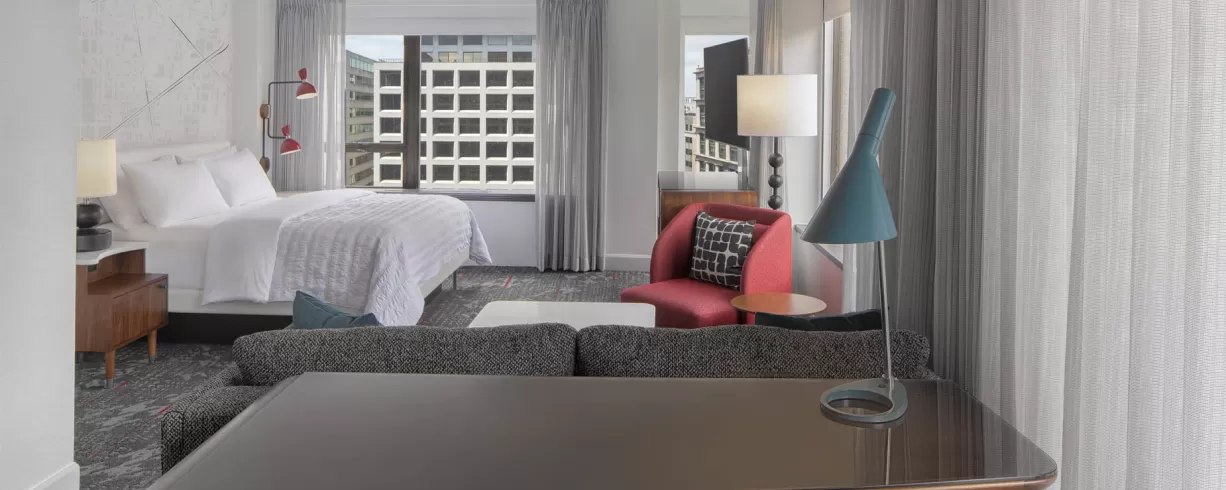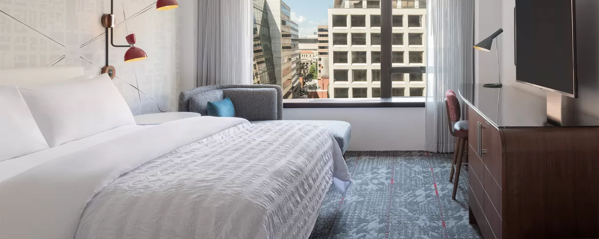 Newly renovated historic hotel New lobby, grab and go marketplace New Hotel lounge New Fitness Center and new space with natural light and outdoor patio Hotel in the heart of DC, only 4 blocks to the White House and within walking distance to The National Mall, Smithsonian Museums and Walter E. Washington convention center. Near dining and shopping.