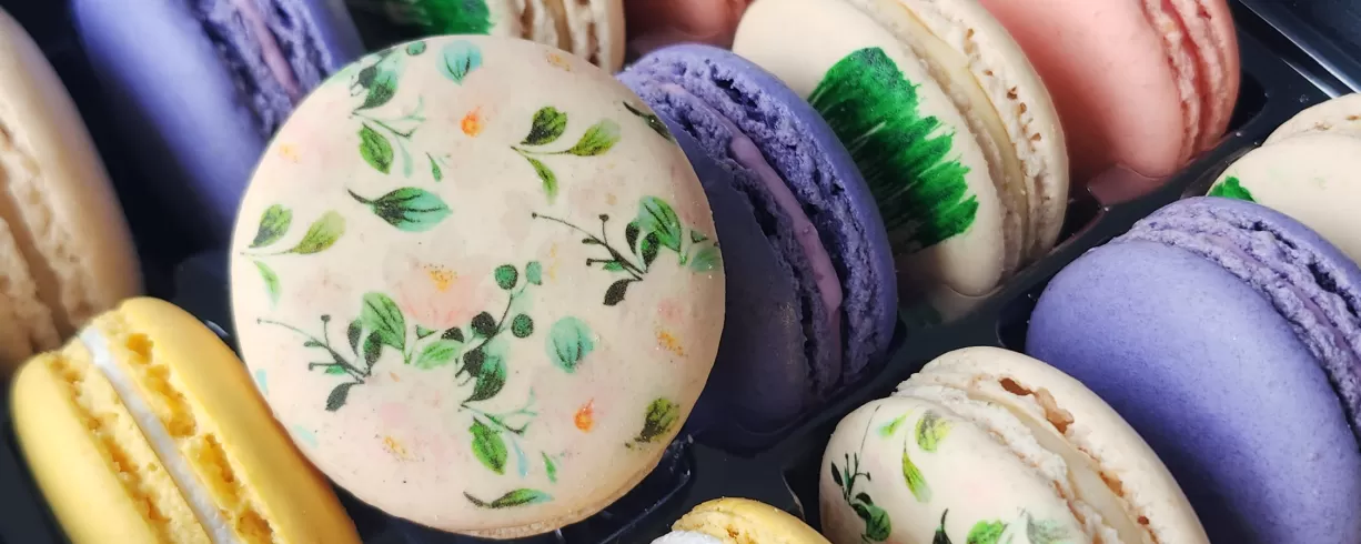 Olivia Macaron makes custom macarons for events, gifts, and celebrations. Personalize your macarons for your event with food-safe printing options that allow you to include your logo or special message on the macarons.