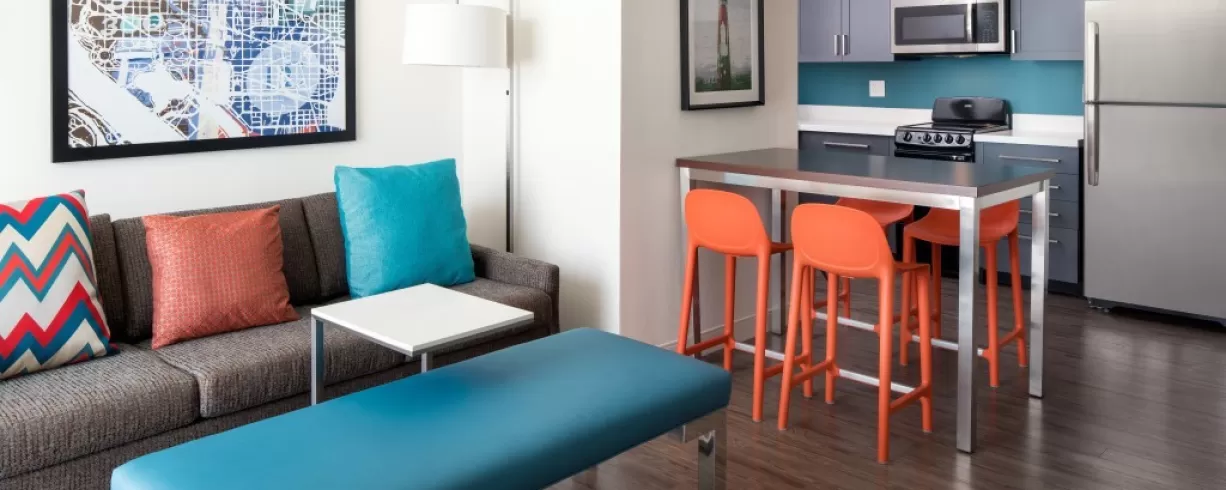 The Residence Inn Capitol Hill/Navy Yard allows you to thrive with every trip you make to Washington, DC. You and your guests will enjoy spacious suites, complimentary full American breakfast daily, complimentary Wi-Fi and a central location in one of DC's hippest neighborhoods. There's plenty of vibrant dining, shopping, nightlife and culture right outside the doorstep. All suites are furnished with a pull out sofa bed, separate bathroom, work desk, HDTV and a full kitchen. Guests can also enjoy the complimentary business center, fitness center, grocery shopping, local calls and Paul Mitchell bathroom amenities. All guests are invited to join each Monday through Wednesday evening for The Residence Inn MIX, offering complimentary beer, wine, soft drinks and a variety of food offerings.