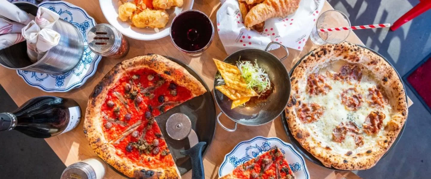 Homemade pizza and pasta in the Historic Waffle Shop Building. Located conveniently close to the Convention Center we have 2900 sq ft. of space to host your event. With capability to do seated dining or standing events. Open for breakfast, lunch and dinner. We also do catering and have a mobile pizza truck! Full and partial buy out options are also avaliable.