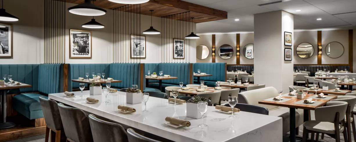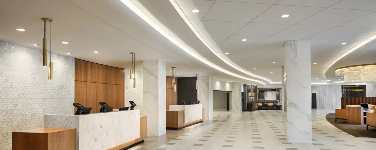 Recently RENOVATED and inspired by the hotel’s original design with classic white marble, warm birch woods and cool brushed steel, the bright and airy lobby is a hub for attendees to engage, grab a gourmet coffee at District Line Cafe & Market, enjoy handcrafted cocktails at Sidecar Bar or savor regionally-inspired cuisine at Four Oaks Restaurant.