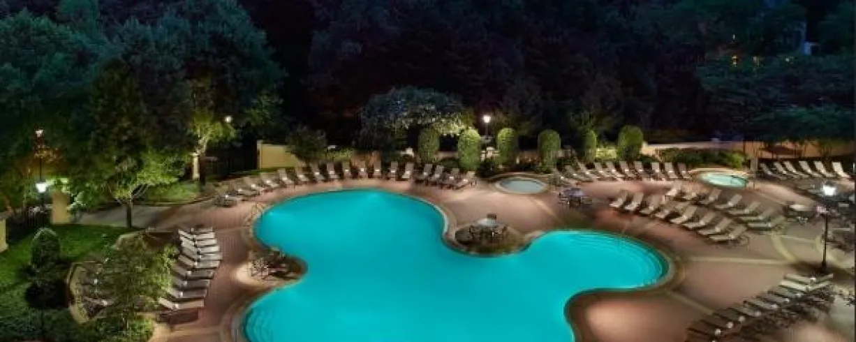 Perched atop a hill of lavish gardens and overlooking Rock Creek Park, the Omni Shoreham Hotel boasts a resort atmosphere with hospitality as its chief business. Among DC's largest convention center hotels, the Omni is a Four-Diamond luxury retreat conveniently located near Georgetown and the National Zoo.