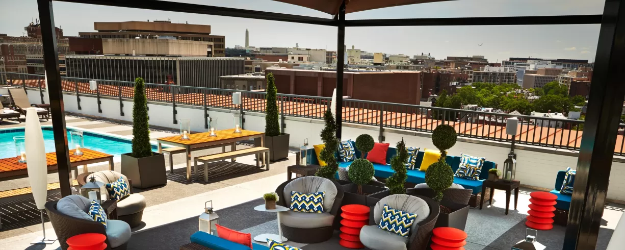 Take in views of the iconic Washington, DC skyline at The Rooftop, our 9th-floor seasonal pool and bar.