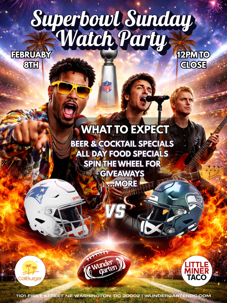 This is not a drill. It’s Super Bowl Sunday, and Wunder Garten is the place to be. From the first kickoff to the final whistle, we’re bringing full-throttle game-day energy, big screens, cold beers, cocktails flowing, and food specials all day long.