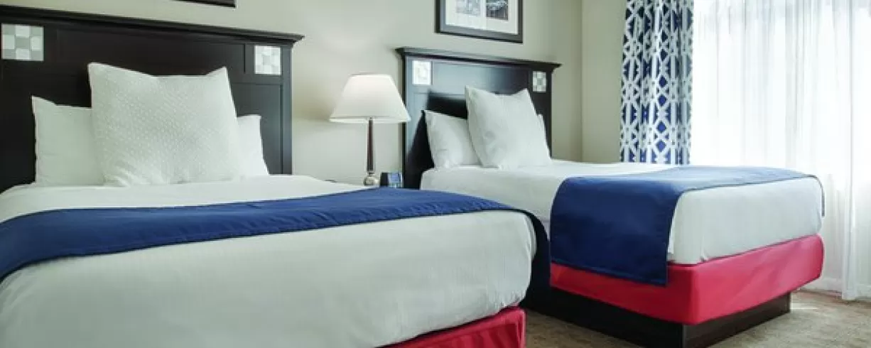 Offering spacious one-, two- and three-bedroom resort suites that comfortably sleep four to ten guests and range from 723 to 1,296 square feet. Suites feature private bedrooms with one king bed in the master, one king or two double beds in the guest rooms and a queen sleeper sofa in the living area. You will appreciate the economy of a fully equipped kitchen, separate living/dining areas and convenient comforts available in select suites, including a whirlpool tub and a private balcony.