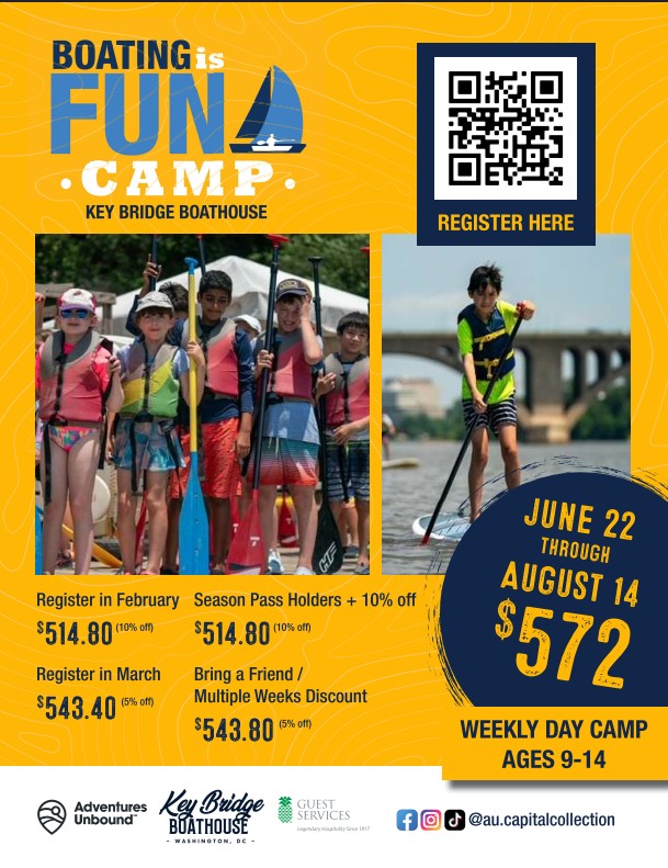 Enjoy kayaking, canoeing and stand up paddleboarding at Key Bridge Boathouse. Experience the tranquility of floating on the water combined with breathtaking views of DC's monuments, Teddy Roosevelt Island's wildlife and the Georgetown Waterfront.