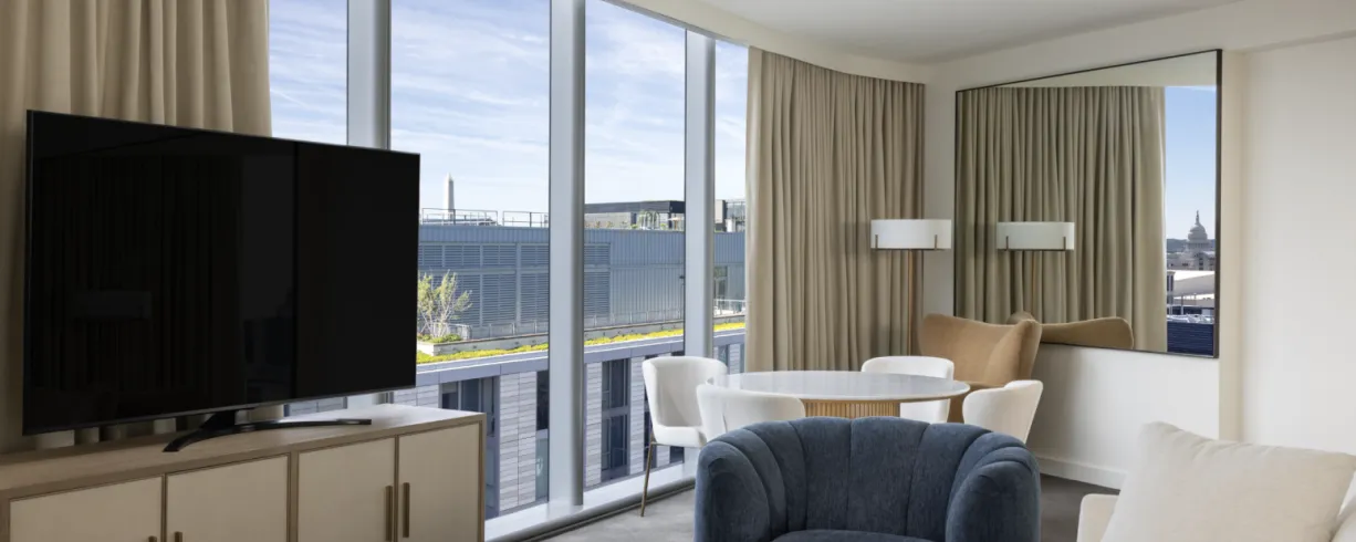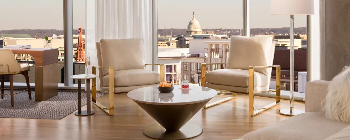 This luxury hotel offers an elevated perch from which to experience the nation's capital, with inspiring views of Downtown across a range of event spaces, every guest room and our cosmopolitan rooftop bar. Moments from the best of the city - the hotel is adjacent to premier shops and dining at CityCenterDC and mere steps from the Walter E. Washington Convention Center and Metro lines.