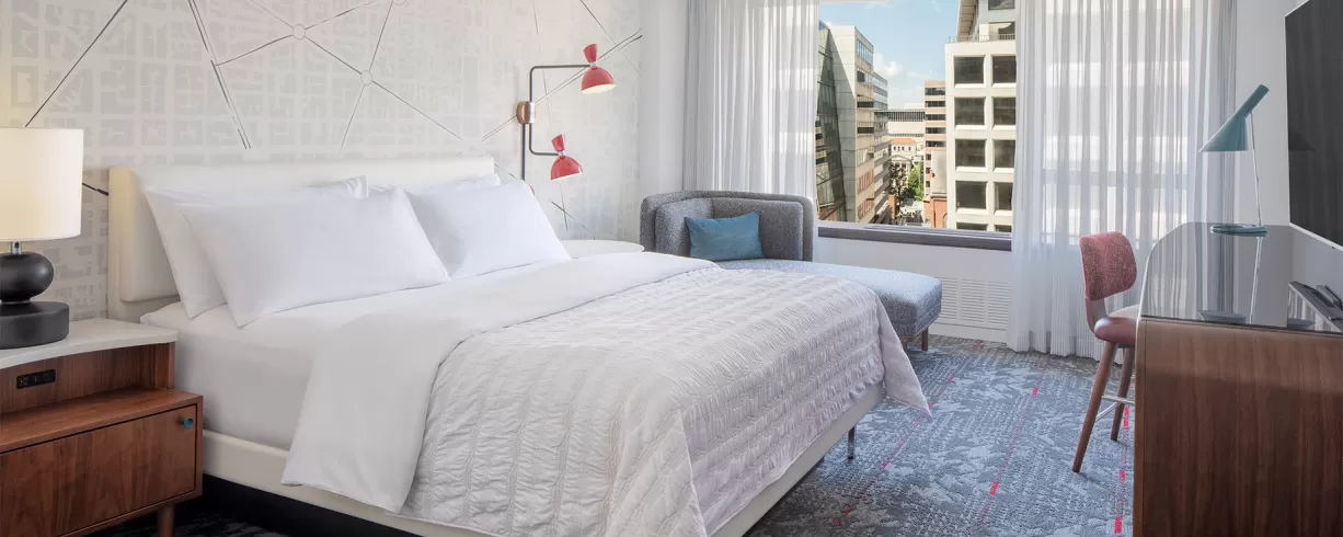 Newly renovated historic hotel New lobby, grab and go marketplace New Hotel lounge New Fitness Center and new space with natural light and outdoor patio Hotel in the heart of DC, only 4 blocks to the White House and within walking distance to The National Mall, Smithsonian Museums and Walter E. Washington convention center. Near dining and shopping.