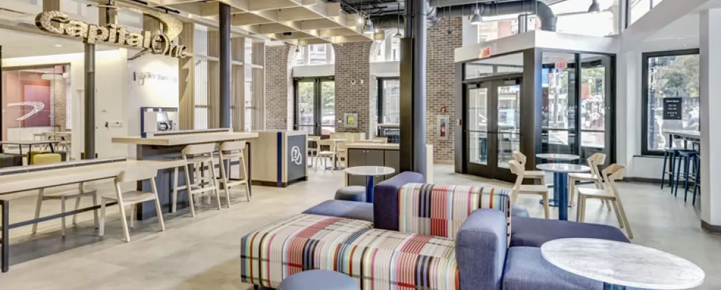 The Capital One Café allows guests to enjoy Peet’s Coffee while relaxing in a comfortable community space with locally baked treats, free WiFi and power outlets.