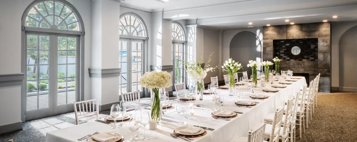 The Darcy, a stylish new hotel located six blocks from the White House and nearby the Convention Center, sits on picturesque Scott Circle. This 226 room hotel features contemporary guest rooms and suites and 8,500 square feet of meeting space including an outdoor terrace. The Logan and Ellington Rooms are perfect for dinners or large meetings for up to 150 people. All the meeting space has natural light and offers a top culinary experience with cuisine by Robert Wiedmaier.