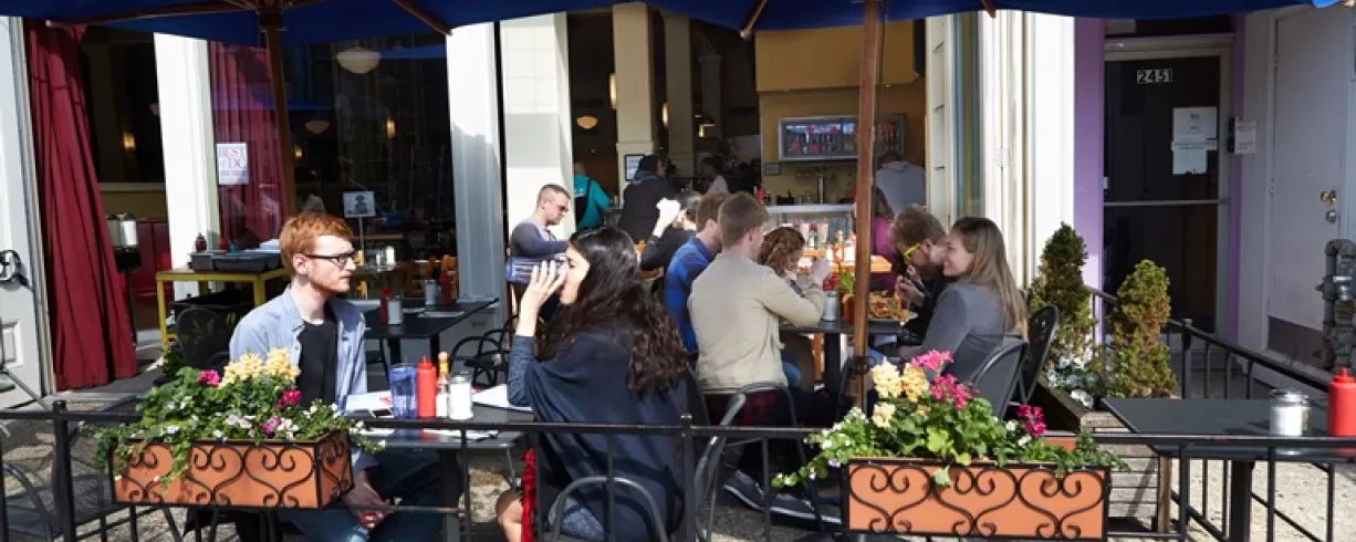 Small hotel with efficient rooms in heart of a lively neighborhood