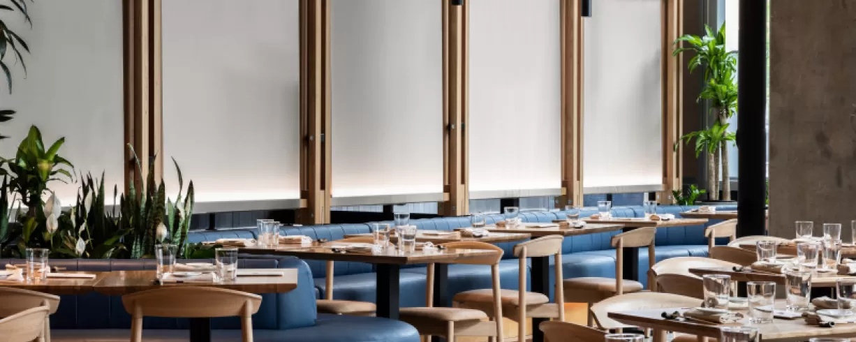 Love on the Run, the fast-casual section of Love, Makoto, is the largest of all four spaces and features two private entrances, bright windows and close proximity to the parking garage. The space marries an elegant, modern aesthetic with a casual ease of service.
