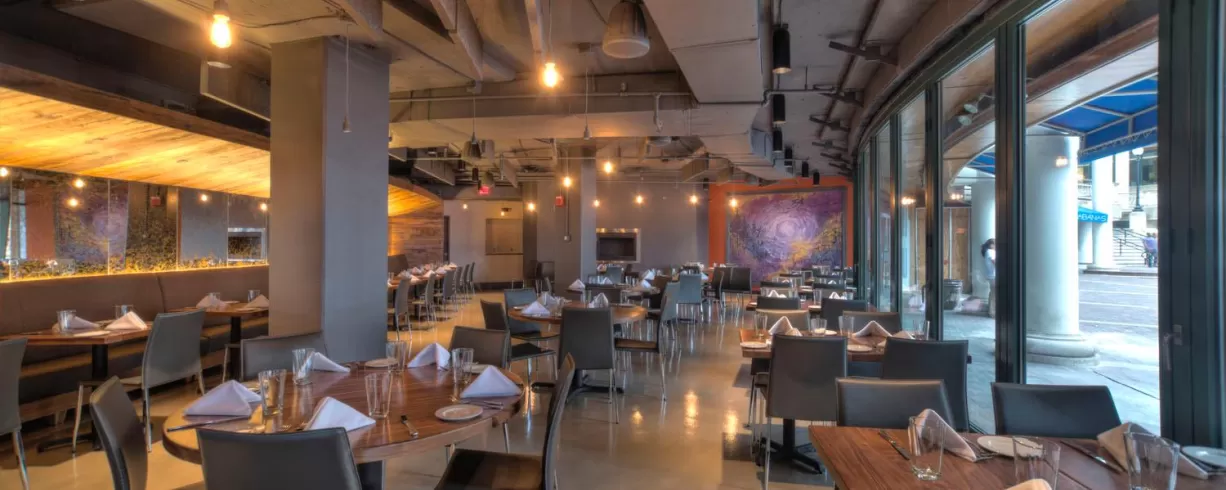 Nick’s Riverside Grill is an upscale casual spot positioned right on The Potomac River, at the Washington Harbour in the historic Georgetown Neighborhood that features a mixture of woodgrain and concrete with a modern flare. Our menu features classic American fare.