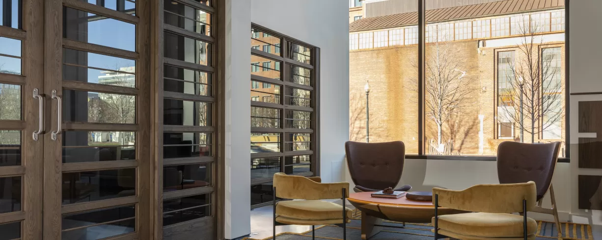 Thompson Washington DC offers 7,000 square feet of indoor and outdoor event space including a stunning rooftop with views of the river and Nationals Park. Thompson event spaces include private dining rooms and meeting spaces with floor to ceiling windows and the 11th floor Rooftop space with 2,500 square feet of divisible inside space and 2,600 square feet of outside space.