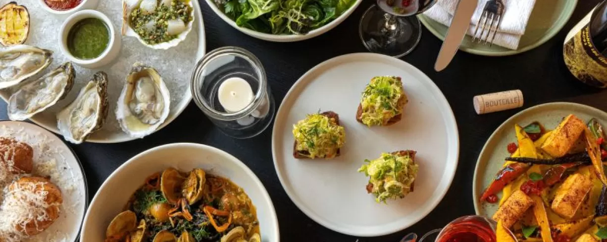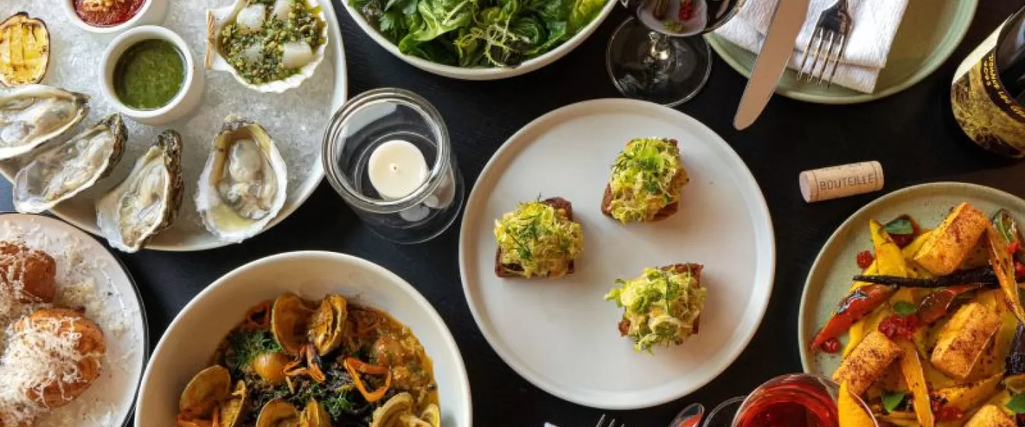 Dine at a.kitchen+bar, by James Beard Award winner Ellen Yin, featuring hyper-seasonal American small plates and an acclaimed natural wine and beverage program.
